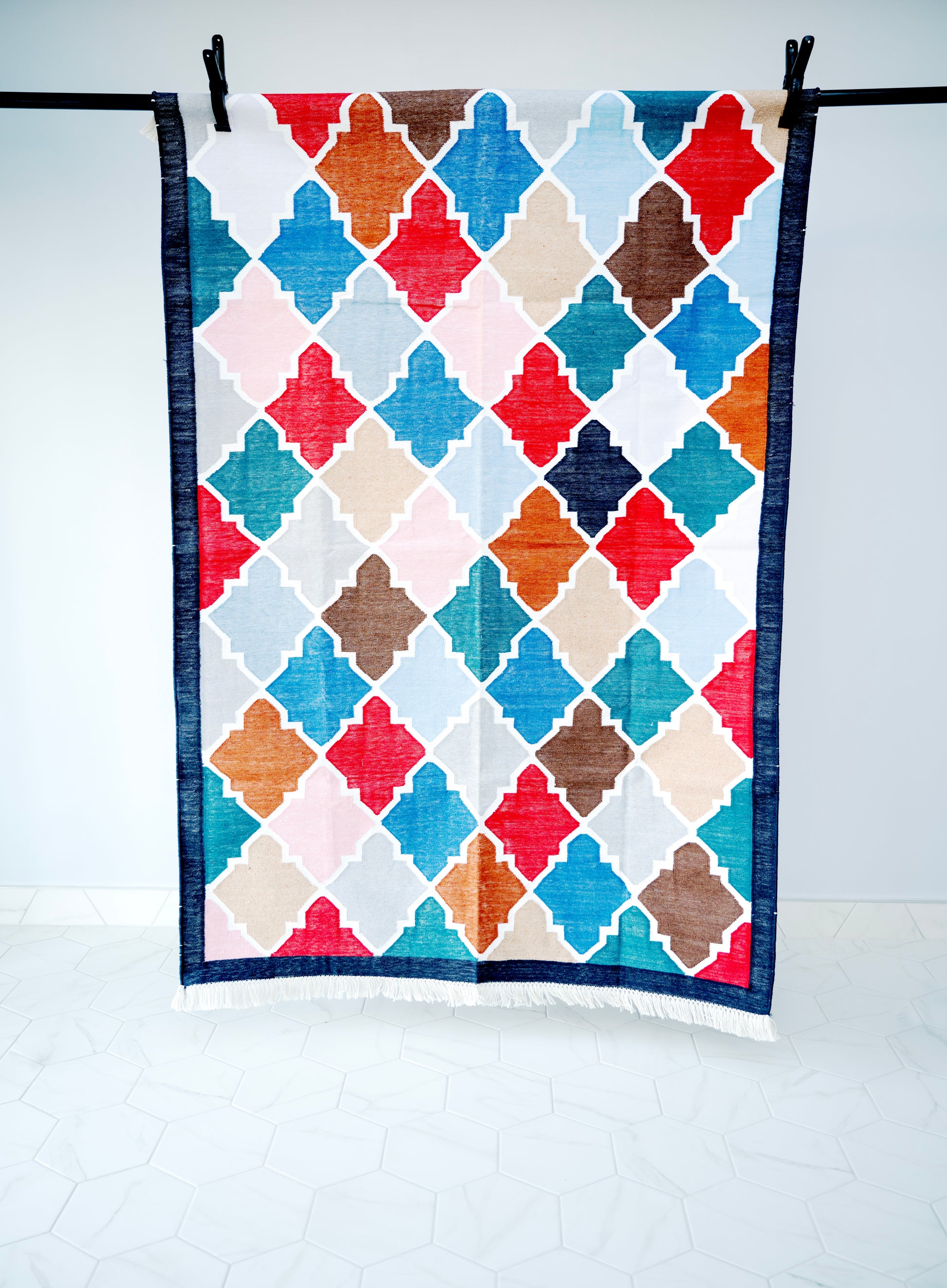 Generous and inviting, this 6x4 foot (approx. 180 x 120 cm) dhurrie makes a striking centrepiece for living rooms, dining spaces, or larger bedrooms. Its handwoven design reflects centuries of tradition from the artisans of Salawas, where rug-making is a true community craft. Durable, timeless, and full of character, it’s a piece to be cherished for years to come. As each rug is handmade, sizes may vary slightly.