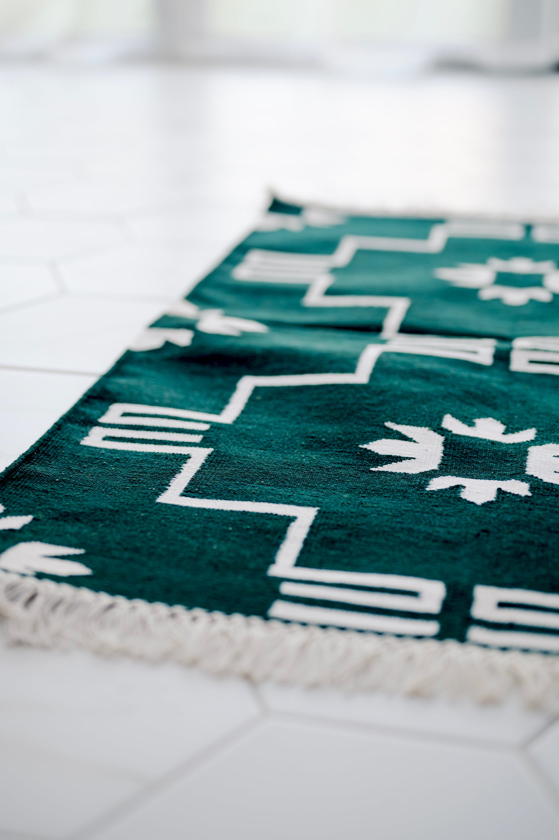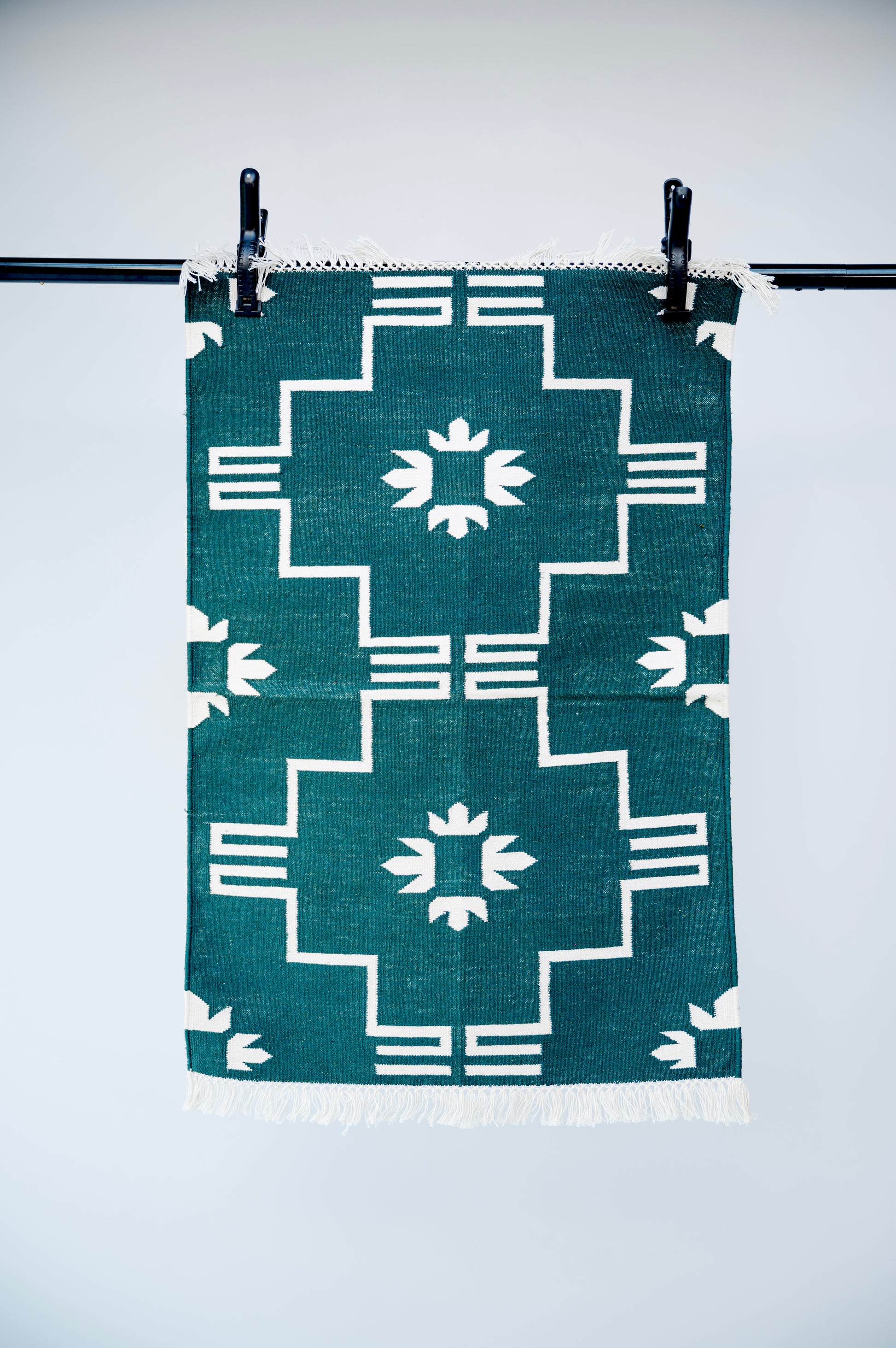 Perfect as a welcoming accent piece, this handwoven dhurrie brings a touch of Salawas craftsmanship into any corner of your home. At 2x3 feet (approx. 60 x 90 cm), it works beautifully by the bedside, at your doorway, or layered under a coffee table. Compact in size, but rich in tradition, each rug carries the laughter and care of the artisans who made it. As each rug is handmade, sizes may vary slightly.
