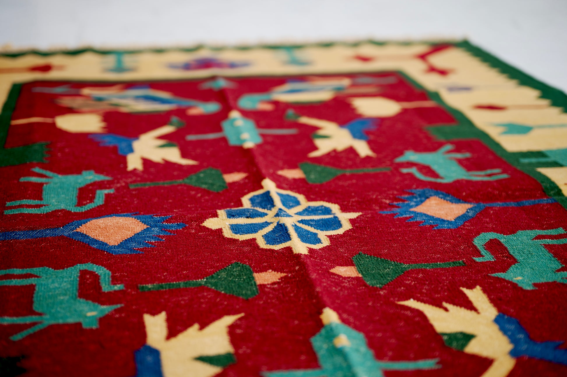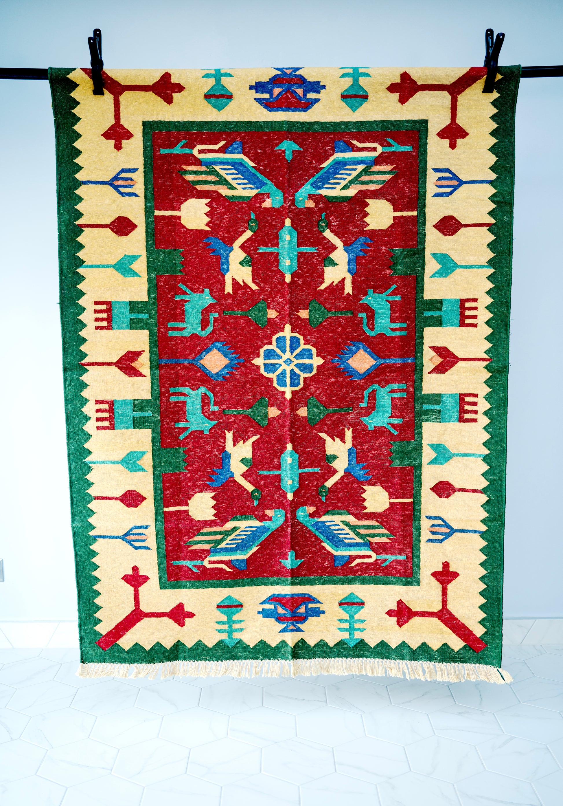Generous and inviting, this 6x4 foot (approx. 180 x 120 cm) dhurrie makes a striking centrepiece for living rooms, dining spaces, or larger bedrooms. Its handwoven design reflects centuries of tradition from the artisans of Salawas, where rug-making is a true community craft. Durable, timeless, and full of character, it’s a piece to be cherished for years to come. As each rug is handmade, sizes may vary slightly.