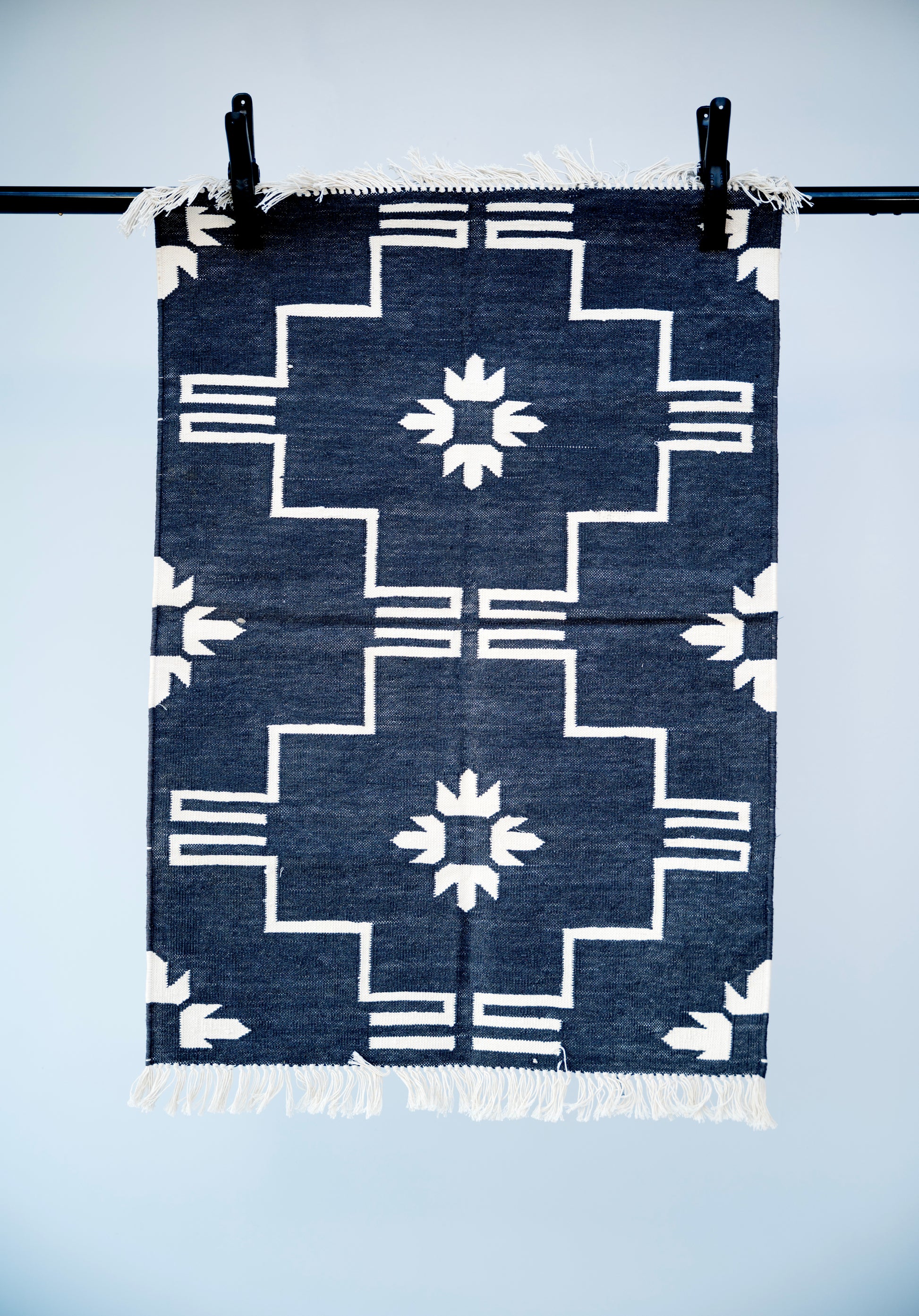 Perfect as a welcoming accent piece, this handwoven dhurrie brings a touch of Salawas craftsmanship into any corner of your home. At 2x3 feet (approx. 60 x 90 cm), it works beautifully by the bedside, at your doorway, or layered under a coffee table. Compact in size, but rich in tradition, each rug carries the laughter and care of the artisans who made it. As each rug is handmade, sizes may vary slightly.