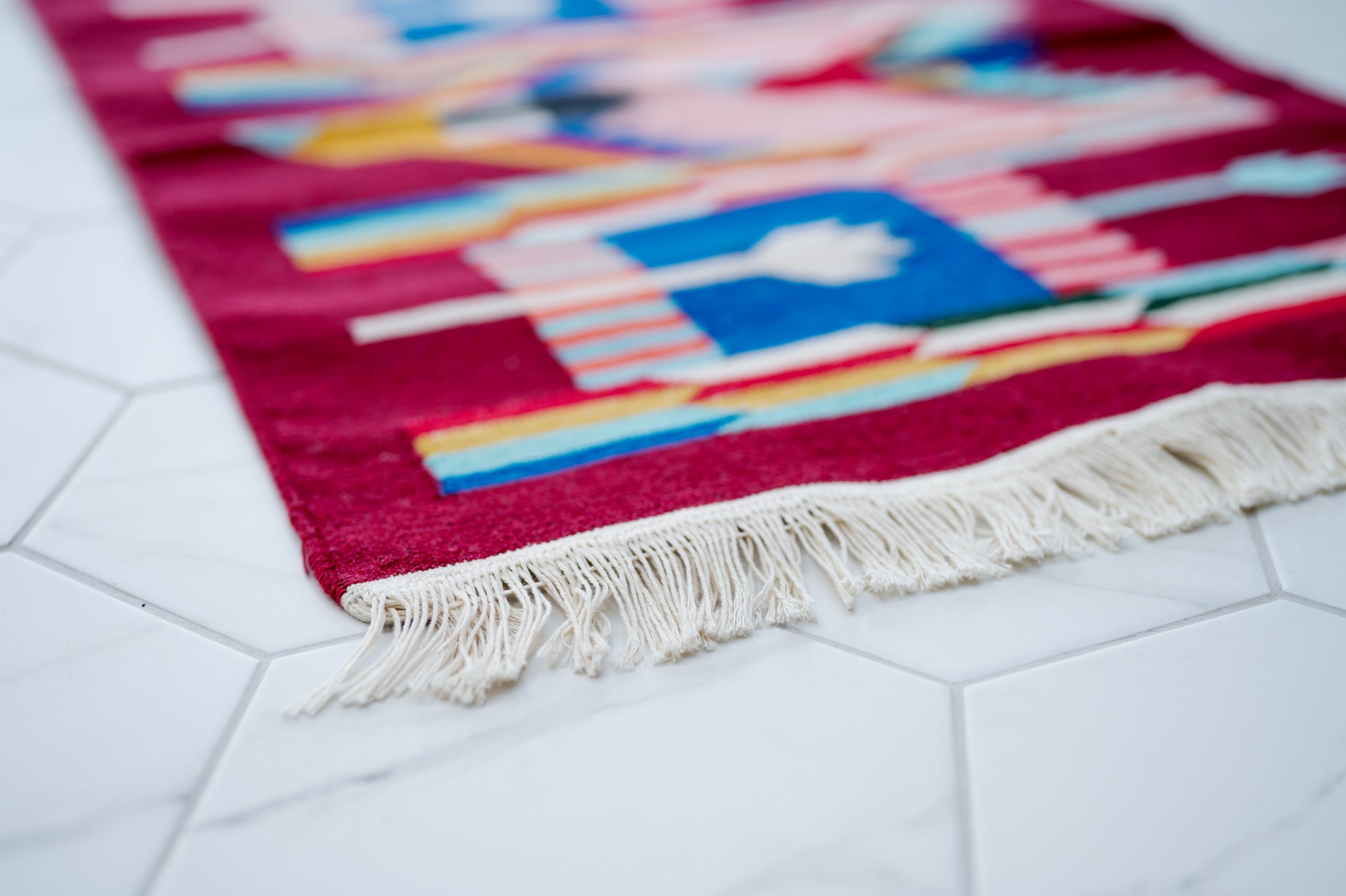 Perfect as a welcoming accent piece, this handwoven dhurrie brings a touch of Salawas craftsmanship into any corner of your home. At 2x3 feet (approx. 60 x 90 cm), it works beautifully by the bedside, at your doorway, or layered under a coffee table. Compact in size, but rich in tradition, each rug carries the laughter and care of the artisans who made it. As each rug is handmade, sizes may vary slightly.