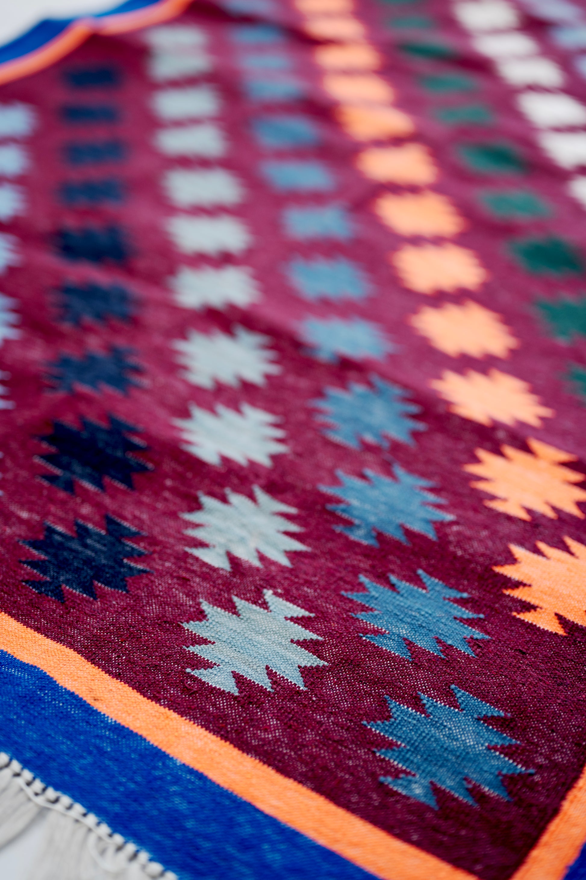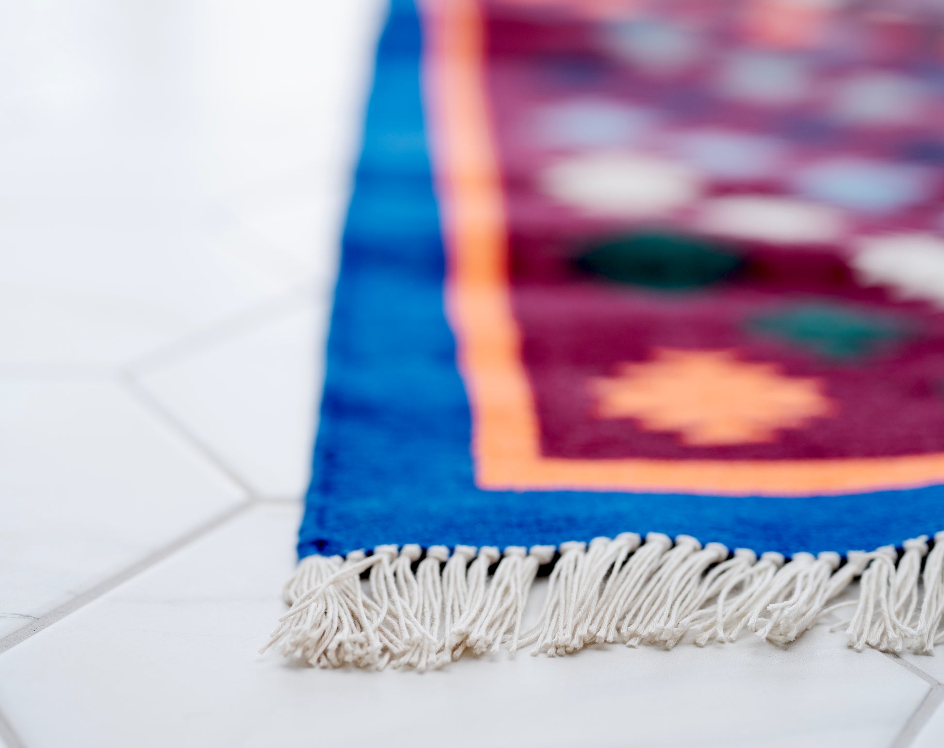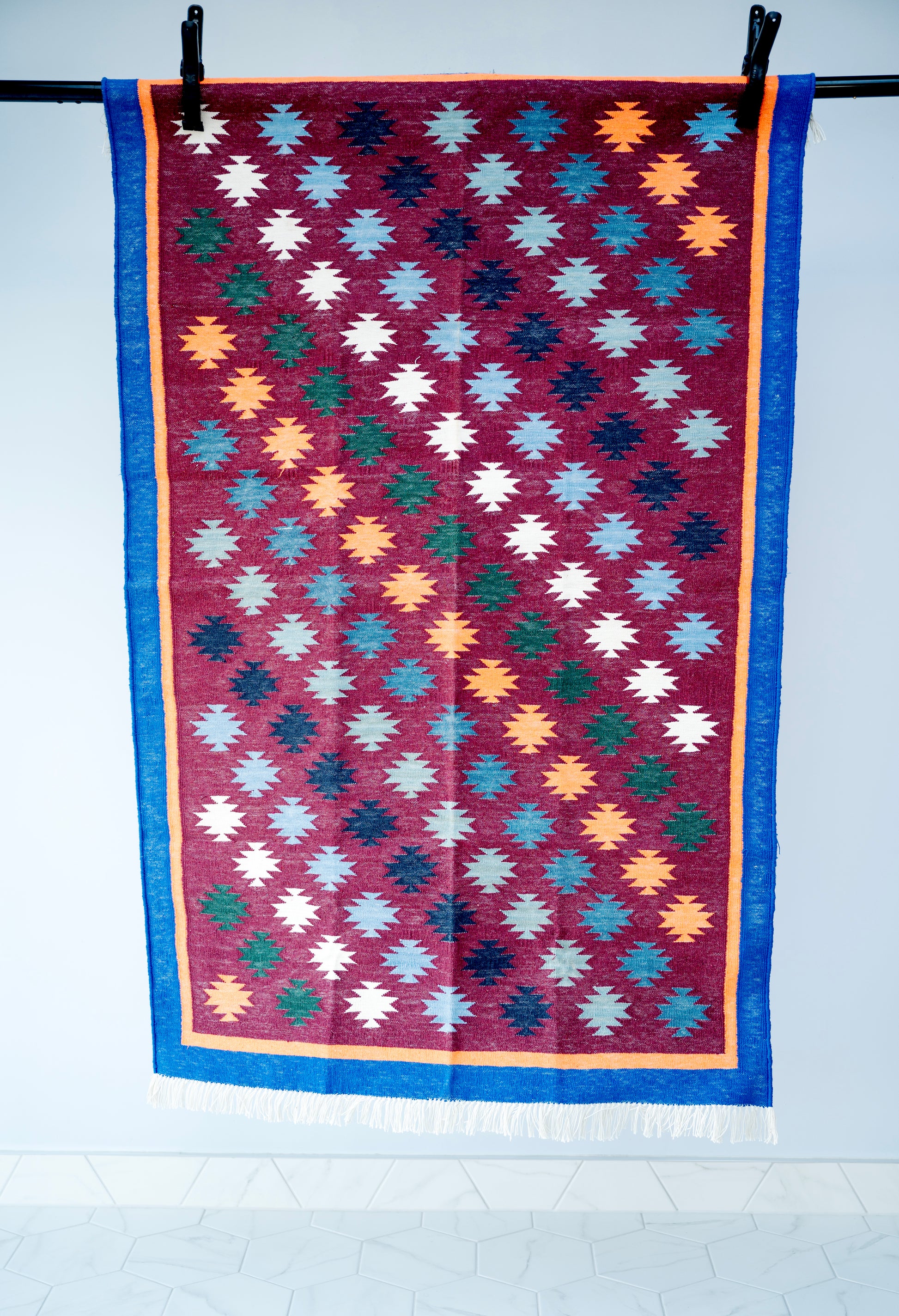 A versatile mid-size rug, this 5x3 foot (approx. 150 x 90 cm) dhurrie is perfect for smaller living spaces, kitchens, or at the foot of a bed. Its size strikes a balance — large enough to make a statement, yet easy to place anywhere in your home. Handcrafted over weeks by skilled artisans, it’s not just a rug but a story woven into every fibre. As each rug is handmade, sizes may vary slightly.